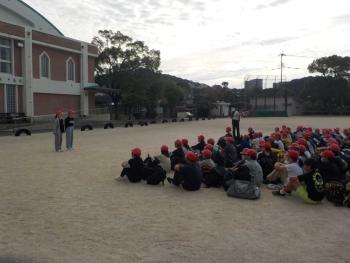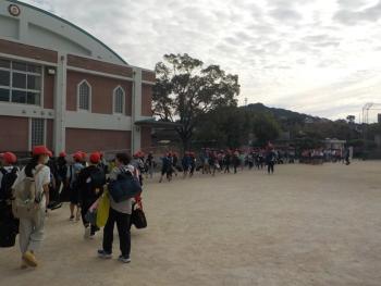 5年生が、2日間の宿泊体験学習に行います。今日は、出発式を運動場で行いました。係の児童の司会のもと、円滑に行うことができました。ほかの学年が見送りに来ていたので、手を振りながら出発していました。