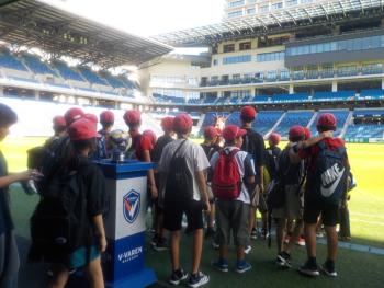 まず、スタジアムシティーで、バックヤードツアーを行いました。普段は入れないロッカーや記者会見室などに入り、貴重な体験を行いました。次に、グラバー園へ行き、グラバー邸などを見学しました。この2日間、子どもたちの真剣な取組で無事終えることができました。