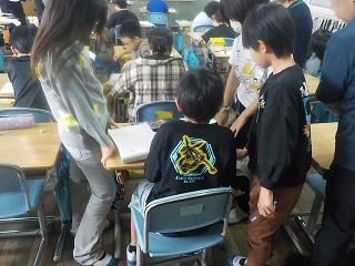 国語の「友情のかべ新聞」を、4年生が学習していました。今回は「ぼく」の推理で正しいと思われることを調べました。自分で調べたり、友達と確認し合ったりして取り組んでいました。