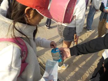朝、正門前で赤い羽根募金活動を行っています。運営委員会の呼びかけで、今週月曜日から行っています。今日も、たくさんの募金が集まっていました。募金活動は明日までなので、募金をしたいと思っている児童がいましたら、声掛けをお願いします。