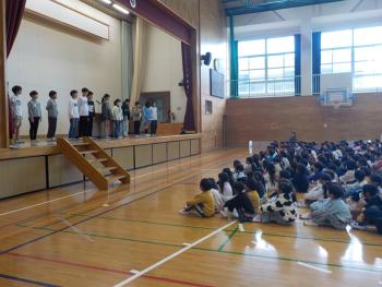 集会委員会による児童集会が行われました。今回は、全校児童が集まって「貨物列車」を実施しました。久々の全校児童での取組だったので、あちらこちらで笑顔があふれていました。