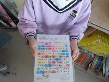図書室で、2年生が本を借りていました。カードを持っていたので、聞いてみると「何冊借りたか色を塗るカードです。もう200冊借りました。」との答え。子どもたちの頑張りが分かるカードでした。