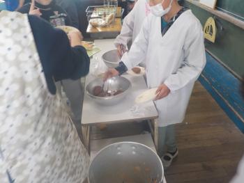 冬至の七種(ななくさ)と呼ばれているかぼちゃ。今日は、その食材を使ったかぼちゃフライがメニューの中にありました。子どもたちも、「楽しみ!」と言って配膳していました。