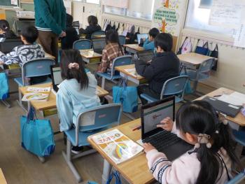 商品を買うときの、お金の出し方を考えようということで1年生が問題に取り組んでいました。グミ52円を買うときのお金の出し方はどうしたらいいか、ノートやタブレットを使って答えを出していました。