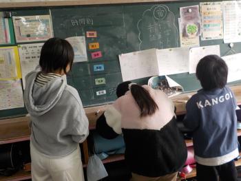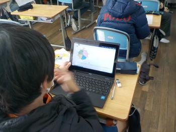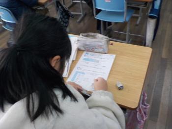 5年生が、算数のグラフの問題に挑戦していました。一人一人のペースに沿ってプリントをしたり、答え合わせをしたり、タブレットで問題を解いたりと頑張っていました。
