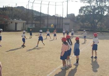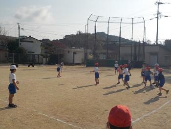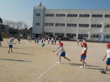 青空のもと、1年生がドッジボールに取り組みました。ボールを力いっぱい投げたり、上手に受け止めたり、当たらないように必死に逃げたりと、どの子も一生懸命に活動していました。