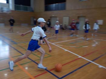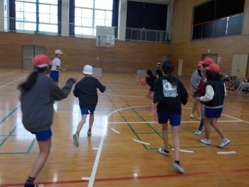 6年生は、今週ですべての授業が終わります。そんな中、体育でバスケットボールをしていました。ドリブルやパス、シュートなど、気合の入ったプレーを随所に見せていました。
