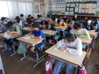 5年生が「運動会がんばりカード」に運動会で大切なことや自分のめあてを書いていました。