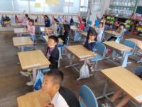 漢字の成り立ちを映像で見ながら、何の漢字になるか一生懸命考えている1年生です。