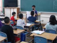 「言葉づかいをよくして、楽しい学校生活にしたい」という議題のもと、班で話し合い、それぞれの意見を出し合っています。