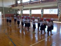 体育の時間、準備運動の後に素早く並んでいる1年生。