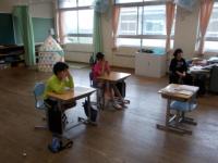 たんぽぽ学級のお友達が、避難訓練の前に「おかしも」の約束を確認していました。
