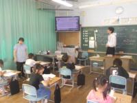 子どもたちは、教育実習生の先生と一緒に、真剣に課題に取り組んでいます。