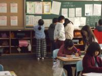 子どもたちは、豆電球と電池を使って、電気を通すものと通さないものに仲間分けしていました。