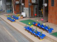 児童玄関前に、1年生がお世話をしているチューリップが咲き誇っています。