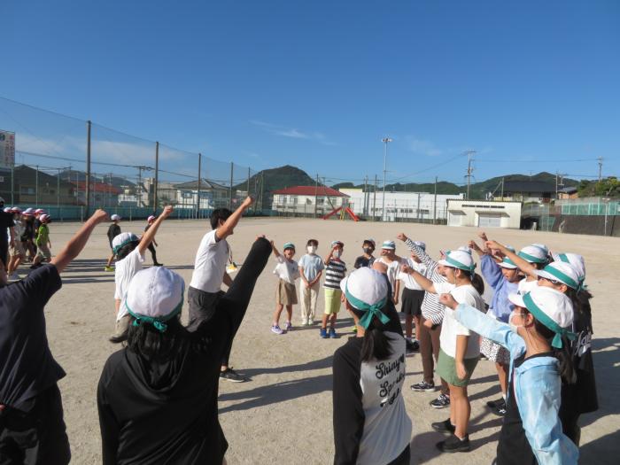 朝一から、こんなに元気いっぱいを出せるのは、1年生のやる気パワー、5年生や応援団のみんなのがんばり、そして保…