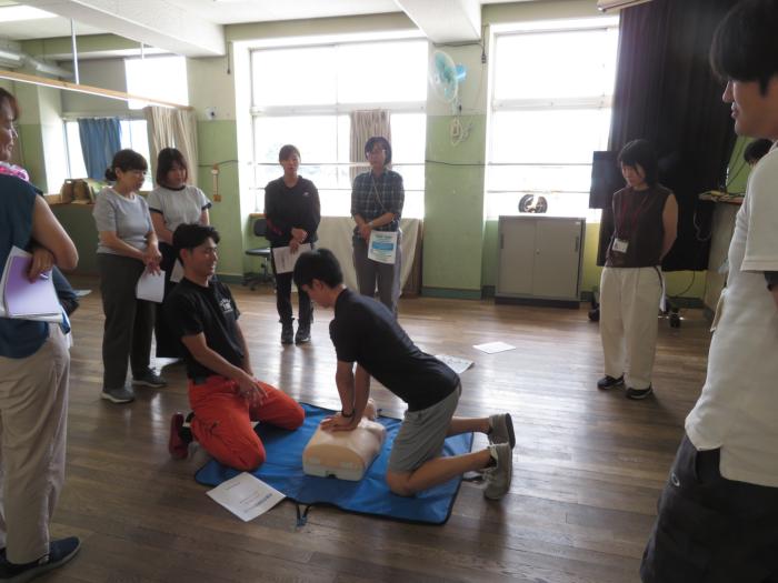 子供たちの命を守るために! 8月28日、2学期がスタートするにあたって、救急救命研修を全職員で実施しました。
