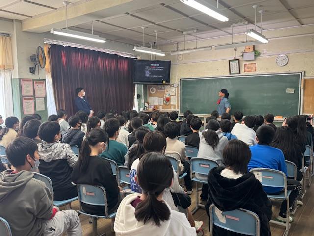 仕事を通じ、地域社会の発展に貢献する 今日は、株式会社池田工業の方をお招きして、6年生に出前授業を行っていただきました。内容は、建設業の実際についてです。建設業には建築と土木があ…