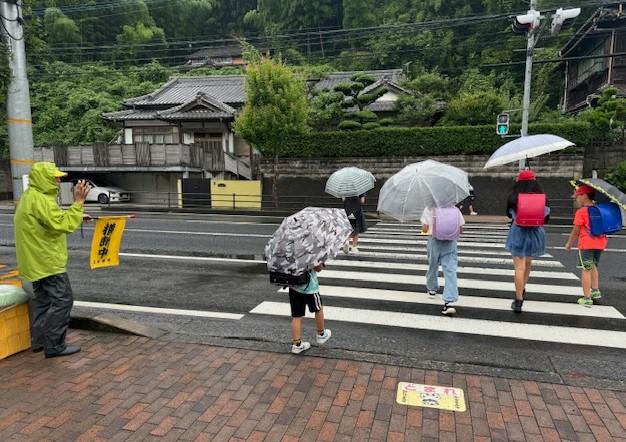 雨の中でもありがとうございます。 今週は梅雨空が続き、すっきりしない天気です。そんな中でも子供たちは朝から頑張って坂道を上り登校しています。今日は白岳方面の登校の様子を見に行…