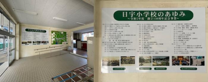 日宇小学校のあゆみ 創立150周年記念事業の一環として、児童玄関の壁面に「日宇小学校のあゆみ」として、これまでの歴史や写真をパネルにして掲示しました。学校にお越…