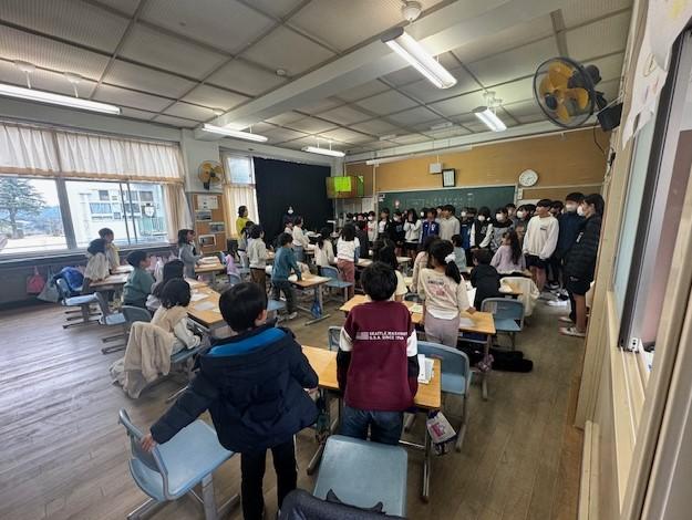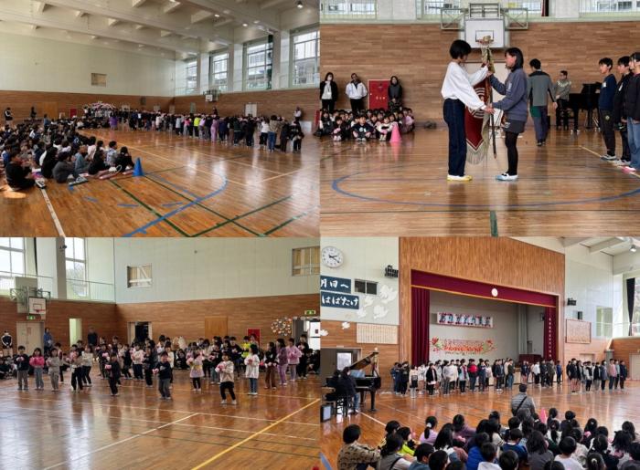 中学校でも頑張って! 今日は、6年生に向けて「ありがとう集会」を行いました。昨年は、体育館に6年生がいて、発表学年が体育館に入れ替わり、感謝を伝える集会でしたが、…