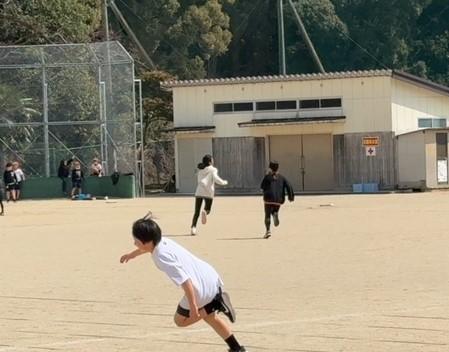 力いっぱい追いかけて 昼休み、6年生が楽しそうに追いかけっこをしていました。それもたくさんの友達と!