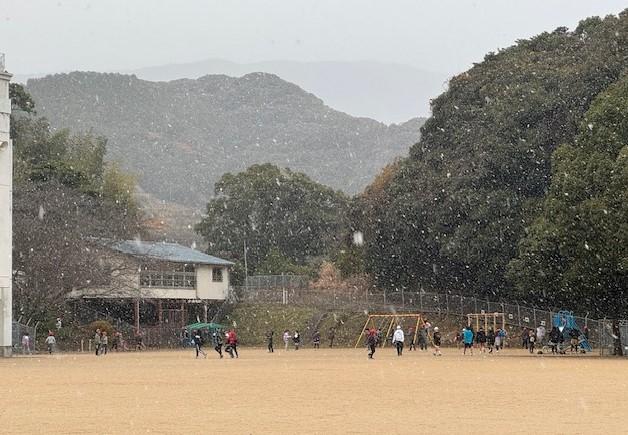 子どもは風の子、元気な子 昨夜からの急激な冷え込みで、今朝は雪が舞い散る中の登校となりました。とても寒い朝でした…。そんな中でも、子供たちは元気いっぱいに朝から外で遊…