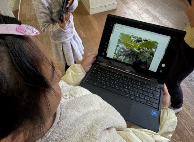 文房具としての活用 2年生が生活科の学習で野菜を育てています。今は、大根が大きく育ち、もうすぐ収穫を迎えます。その成長の様子を、タブレット端末を使い、写真を撮っ…