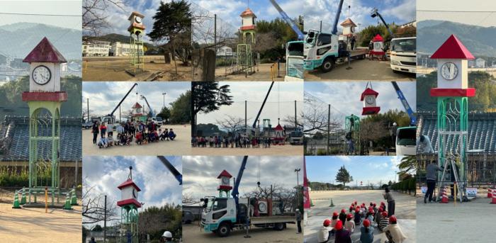 50年間、本当にありがとう! 創立150周年記念事業の一環として、日宇小のシンボルである時計台の更新が今日行われました。創立100周年を記念して昭和48年に日宇小育友会(…