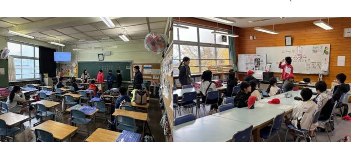 来年4月が楽しみです 今日、保幼小連携事業として日宇保育所の年長園児が5年1組と交流しました。来年4月には小学校に入学する子供たちは、学校の中を5年生と一緒に見学…