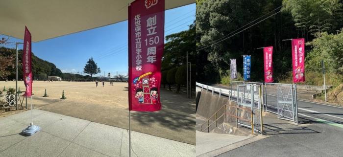 150周年記念式典に向けて 150周年を記念したのぼり旗を、校舎内外に立てました。12月3日の記念式典はもちろんのこと、子供たちに日宇小学校の150歳の誕生日を祝う気持…