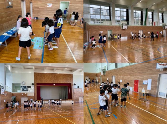 2年生が、生活科の学習で身近なものを使って作ったおもちゃで、1年生と楽しい…