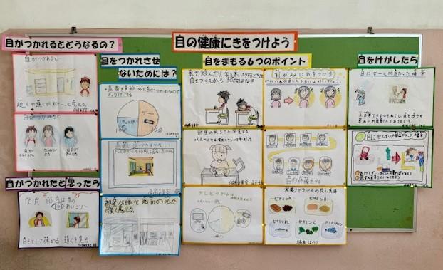 10月10日は目を大切に 10月10日は「目の愛護デー」です。日頃酷使している目を大切にすることはとても大切です。保健委員会の子どもたちが、目を大切にすることについて…