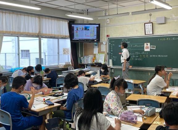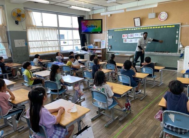 Become familiar with English 今日は、ALTの先生にお越しいただき、英語に慣れ親しむ学習を行いました。各学級で、それぞれの学年に応じた英語の学習に取り組み、笑顔いっぱいで…