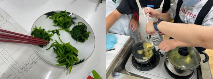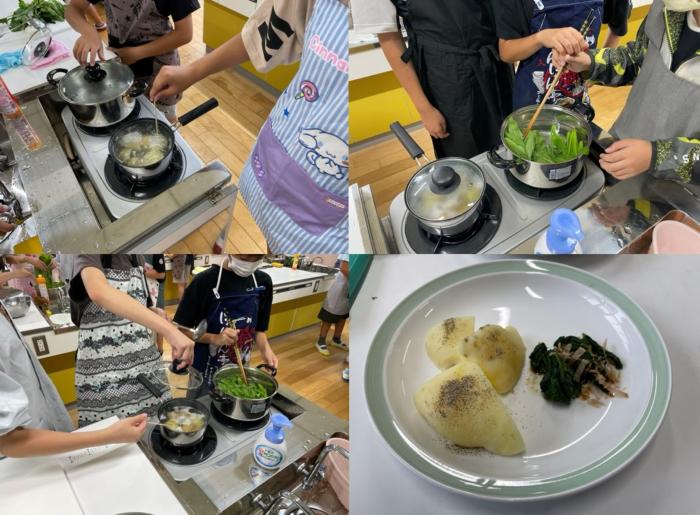 手際よくゆでて 5年生が調理実習で、ほうれん草とジャガイモをゆで、そのゆで方の違いや手際について学習しました。ゆでたほうれん草を手際よく水ですすぎ、食べやす…