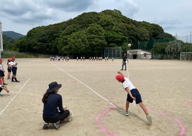 遠くに投げるぞ! 先日雨で実施できなかったスポーツテストのソフトボール投げを今日4年生以上が実施しました。遠くに投げるには、腕とひじを上手く使う必要があります…