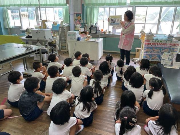 一生大切にします! 6月は歯の健康月間で、保健室で体重測定後、養護より学年に応じて歯の健康についての保健指導を行っています。今日は、2年生が虫歯にならないために…