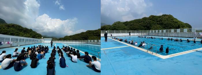 水しぶきを上げて 本日より水泳学習をスタートしました。まずプール開きとして6年生が水泳の学習を行いました。