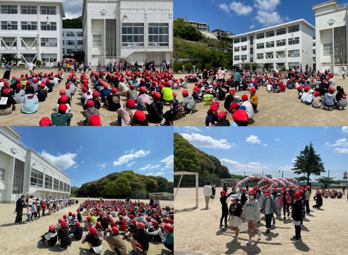 これからもよろしくね! 今日、快晴の空の下、運動場にて歓迎集会を行いました。まず、花のアーチを6年生と共に1年生が入場し、歓迎のゲームや歌を歌い、楽しい時間を過ごす…