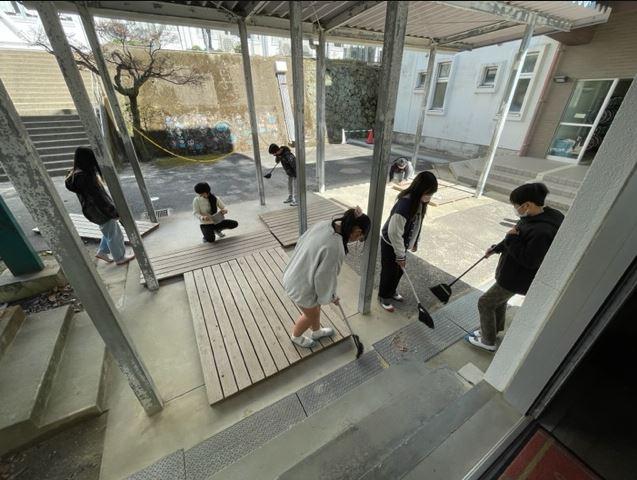 今までの感謝を込めて 6年生が、校舎内外のいろいろなところを一生懸命に掃除していました。明後日に卒業式を控え、小学校生活の締めくくりの一環として、今までの感謝の気…