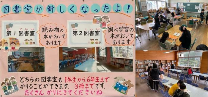 リニューアルオープン! 日宇小にある二つの図書室の移動と整理が完了し、今日から二つの図書館がリニューアルオープンしました。