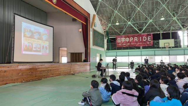 4月が待ち遠しくなりました 今日、日宇中学校体育館において、令和5年度入学生説明会が行われ、日宇小6年生も参加しました。