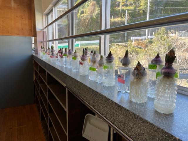 さわやかな香りが楽しみです。 2年生教室廊下に、ヒヤシンスが水耕栽培されています。小学生の頃巣立てた記憶がある方も多いのではありませんか?春にさわやかな香りを届けてくれる…