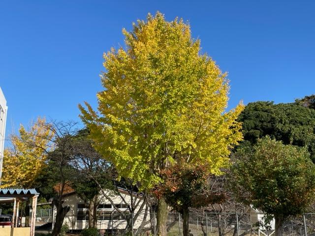 きれいに色づいて 集中下足室から運動場へ下る階段の横に、大きなイチョウの木があります。11月に入ると少しずつ葉が黄色く色づき始め、もう少しで黄色一色になります…