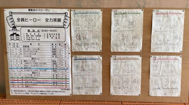 こういう物も作ります。 写真は、運動会の際使う係用プログラムです。準備や決勝、審判、出発、招集、放送、救護、児童管理等様々な係を5年生以上の子どもたちが担当します。…