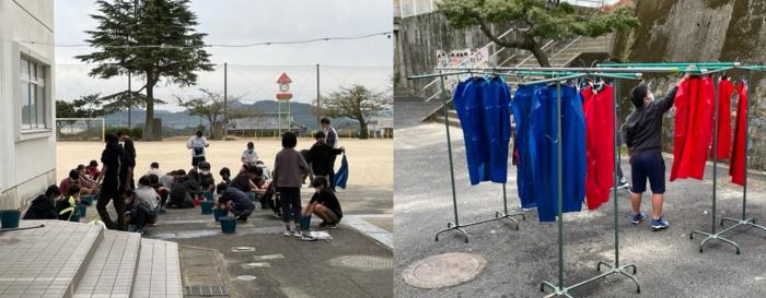 実践することで、より身につきます! 6年生が、運動会の表現で使用した法被を洗濯していました。家庭科の学習で学んだ洗濯方法を生かして、一人一人が一生懸命にきれいにする姿を見て、嬉…