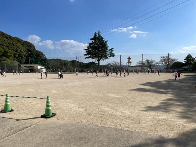 さわやかな秋空の下 11月に入り、さわやかな秋空が続いています。今日の昼休みも子どもたちは運動場にて元気に遊んでいました。