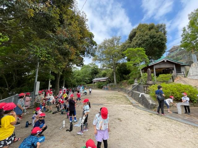 学校から山祇神社へ下り、日宇町一二組公会堂を通り、南高横から日…