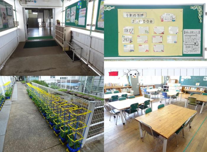 渡り廊下周辺の様子 日宇小学校は大きく管理・特別教室棟と教室棟の二つの校舎があります。管理・特別教室棟と教室棟とは段差があり、渡り廊下で結んでいます。その周辺に…