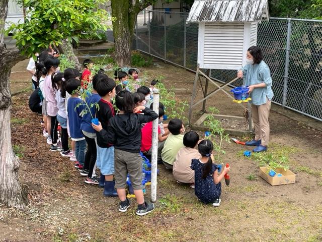 大きく育ってね! 2年生が生活科の学習で、ミニトマトの苗を自分の植木鉢に植えました。植物の成長を観察しながら、野菜の成長を楽しみに収穫して食べます。自分が育て…